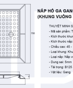 Thông số kỹ thuật của nắp hố ga gang 700×700 khung vuông nắp vuông
